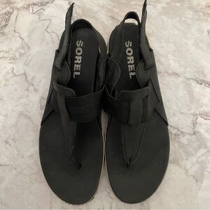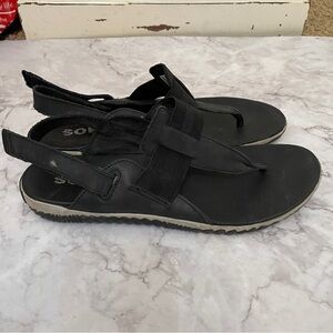 Sorel Size 10 Out N About Black Leather Slingback Thong Sandals NL 3259-010 shoe