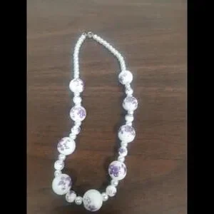- A beautiful floral-themed necklace, intricately designed with purple and white beads that add a touch of sophistication.