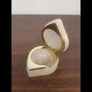 - An exquisite charm box adorned with a subtle golden trim, ideal for keeping your precious items or as a decorative piece.