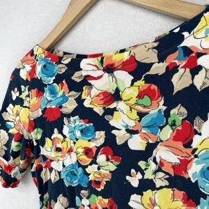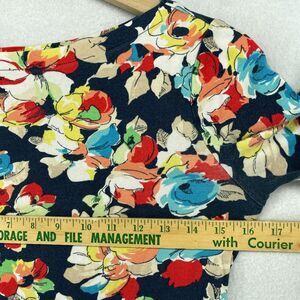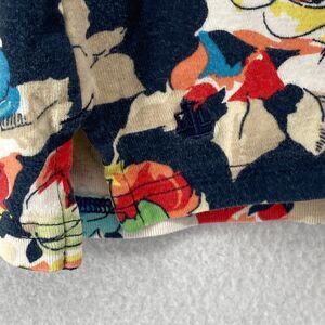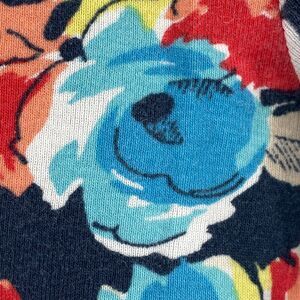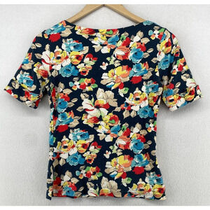 LAUREN RALPH LAUREN Top M Ribbed Floral Boat Neck Cuffed Sleeve Blue
