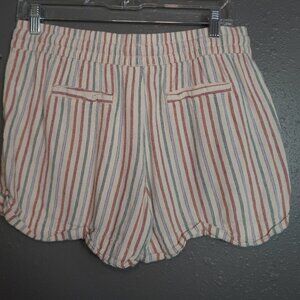 Dip Womens Multicolored Striped Linen Blend Drawstring Summer Shorts In A Size Medium. These Shorts Are Preowned With Signs Of wear Such as Color fade and Loose Thread But Still looks in good Condition.