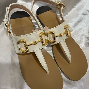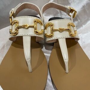 Brand new Charlotte horsebit Gucci sandals. No call outs. Comes with dust bags and box. Cream color leather and gold hardware.