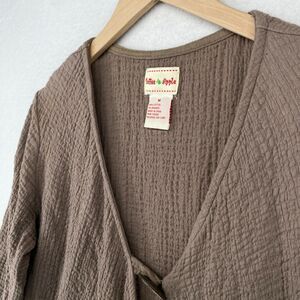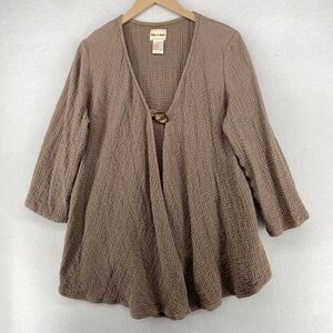 TOFFEE APPLE Tunic Top Womens M Lagenlook Crinkle Gauze Cardigan Cotton Brown