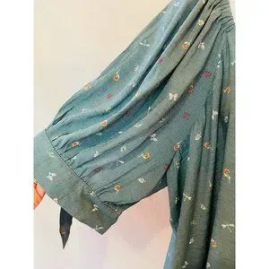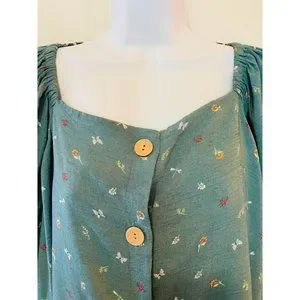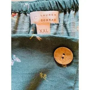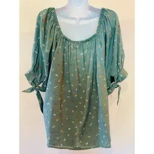 Lauren Conrad Top Shirt Peasant Women’s Size XXL Flower Butterfly Green Boho