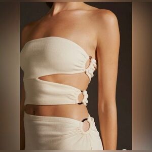 Anthropologie Bordeaux Strapless Cutout Dress in Cream