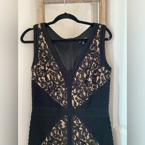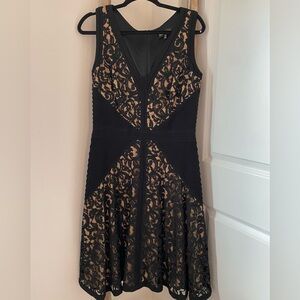 NWOT - Tadashi Shoji Lace & Jersey Fit & Flare Black Nude Sleeveless Dress