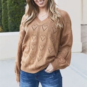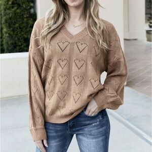🧁3for$36🧁Hearts Openwork Relaxed Fit Knit Sweater sz XL