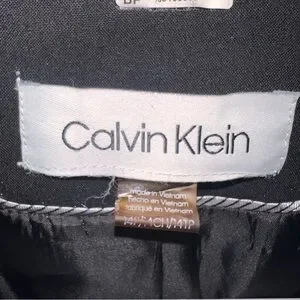 Calvin Klein lined suit jacket, black. Two-button style, small slit in the back, front pocket flaps.