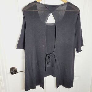 Ischiko Oska Sweater US 8 Black Open Back Tie Lagenlook Asymmetrical Slinky