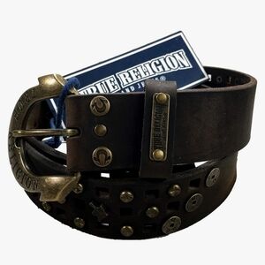 NWT Women's True Religion Buddah Hardware Logo Studded Leather Belt