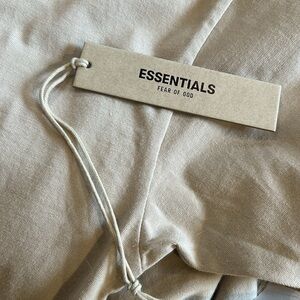 Essentials fear of god t shirt size large. This crew neck mens short sleeve t shirt is in silver cloud (like a light gray). Please note this brand is oversized! Neutral color matches all styles. Great for casual and athletic wear. Includes classic label on front and back.
