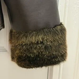 Stay cozy and stylish with this vintage BB Dakota Women's Brown Penny Lane Jacket. This Y2K-inspired jacket features a faux leather outer shell with a bohemian trim detail, perfect for adding a touch of retro flair to your outfit. The jacket comes in a size medium, with long sleeves, a zip closure, and convenient pockets for storing your essentials. Pair it with your favourite jeans and boots for a trendy casual look this winter, fall, or spring season. Classic fit and hand wash spot treat only care instructions.