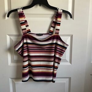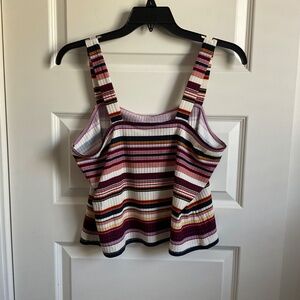 Lane Bryant square neck tank top. Ribbed material. Multicolored stripes.