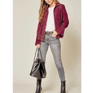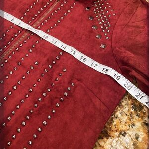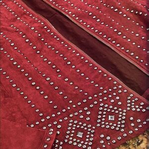 The pics are amazing but don’t even compare to how gorgeous she is in person!!!!!! Stunning Vegan Suede Deep Burgundy Front ZIP Jacket!