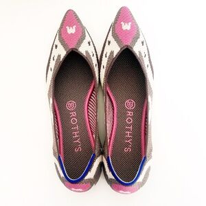 Rothy's Retired The Point Moroccan Rose Limited Edition in a Women's size 9. According to the Rothy's website these run small and they suggest sizing up a half size and a whole size up if you have a wide foot. These shoes are comfortable, flexible and washable!