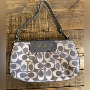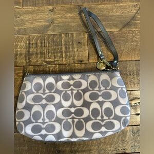 Coach Signature Canvas Trim With Leather Trim-gold toned hardware-zip top closure-8 interior card slits and 1 slip pocket-approximately 9.5x5.5-in excellent condition!