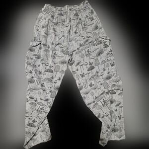 Mushroom print festival pants, size M
