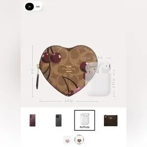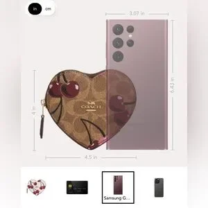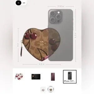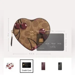 Coach NWT Heart Coin Case In Signature Canvas With Cherry Print
