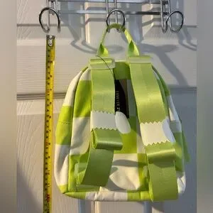 NEW NWT ๐๐ค lime green white checkered flag backpack ๐ handbag purse small