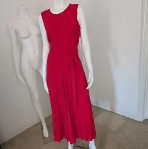 worn a handful of times and dry cleaned. nearly new condition. wide leg jumpsuit with back zipper and side pockets. lined. sash belt. full, pleated legs. INCREDIBLY FUN to wear and dance in!