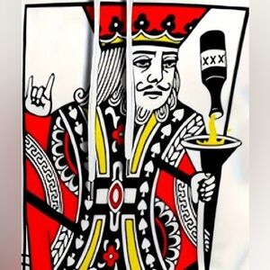This NWOT 2 Piece: Poker King Print Hoodie Tracksuit is in Exceptional Used Condition (EUC): Previously lovingly cared for; but this is a preloved (used) item, some normal and minimal wear is expected. Depending on device used, color may vary. Review pics as they’re part of the description. Sold as is, no refunds. All auction bids/wins are final, no cancellations.