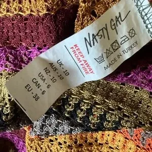 Nasty Gal Crochet Stripe Short Sleeve Maxi Dress – a perfect blend of bohemian charm and modern elegance. This stunning maxi dress features a vibrant crochet pattern with bold stripes in shades of fuchsia, pink, tan, and more, creating a visually captivating look that’s sure to turn heads. The short sleeves and fitted bodice accentuate your silhouette, while the flowing skirt adds a touch of grace and movement. Key Features: Vibrant Crochet Design: The intricate crochet pattern in a mix of fuchsia, pink, tan, and other complementary colors offers a unique and eye-catching look. Comfortable Fit: The short sleeves and fitted bodice provide a flattering fit, while the maxi length ensures ease of movement and comfort. Versatile Style: Perfect for a variety of occasions, from casual outings to special events, this dress can be dressed up or down with the right accessories. Quality Craftsmanship: Made with high-quality materials, this dress is designed to offer both style and durability. Elevate your wardrobe with the Nasty Gal Crochet Stripe Short Sleeve Maxi Dress and embrace a look that’s as unique as you are. Whether you’re heading to a summer festival, a beach party, or a casual brunch, this dress is your go-to choice for effortless style and comfort. Don’t miss out on this must-have piece – add it to your collection today!