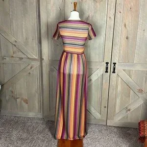 Nasty Gal striped Crochet maxi dress with short sleeves Size 10