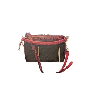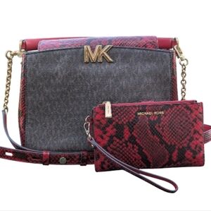 LIKE NEW MICHAEL Kors SET Karlie Crimson Logo Print Faux Snake Textured Leather