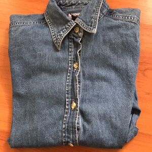 Classic denim shirt with button-up front. Long sleeves and a casual fit. Perfect for layering or wearing alone.
