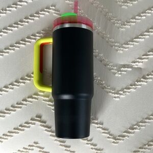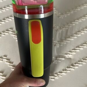 Minor scratches to cup. See pics. Yellow and orange handle top is clear neon pink with yellow and green.