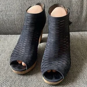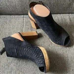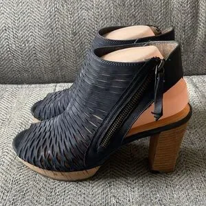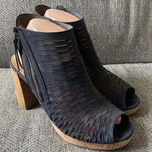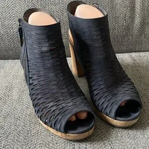 Paul Green Costa Blue Perforated Nubuck Leather Platform Sandals Booties Size: 9