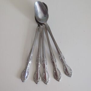5 Robertcraft Iced Tea Spoons Stainless Flatware Silverware Floral Vtg MCM Korea