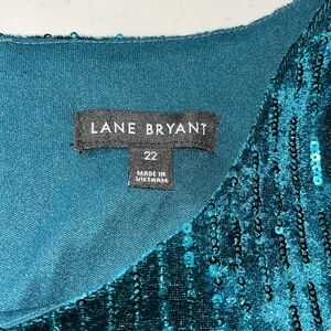 Lane Bryant Size 22 Teal Velvet - Sequin Sparkle Shift Dress. Keyhole with Button Closure (Back). 3/4 Sleeves. Fully Lined. Body is Polyester/Spandex Blend - Lining is Polyester.