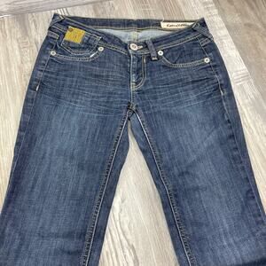 Karmel Alden 26 Jeans Low Rise Flare Flap Pocket Blue Denim Vintage 3kas8169