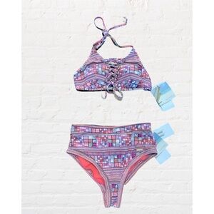 Nwt Sunseeker Australia Bikini Swim Halter Lace Up Top Cutout High Waist Bottoms