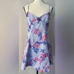 ZARA V-neck Blue and Pink Floral Print Mini Dress Size Large Preloved