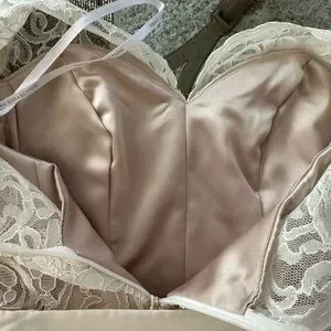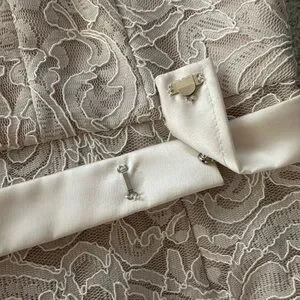 Chic sleeveless Ivory lace dress. Features a stylish belt. Perfect for special occasions such as bridesmaid, Easter etc.