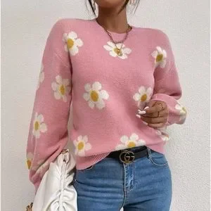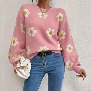 New Daisy pink floral pattern sweater