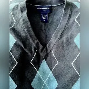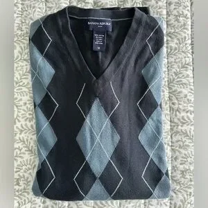 Men's Banana Republic Cotton V-neck Argyle Sweater long sleeves