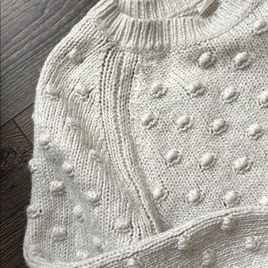 Soft knit sweater with a charming polka dot texture. Perfect for chilly days. Stylish and comfortable.