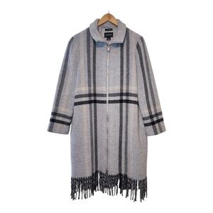 Plaid wool coat with fringe hem