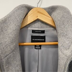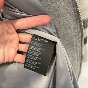 I sized up while pregnant and only wore it a few times. The coat is predominantly gray, with a dark gray, black and cream plaid check pattern. Side pockets. A fun play on a classic car coat! NOTE: listed as a size small because I believe it runs big. The actual size tag is XS. Approximate measurements laying flat: