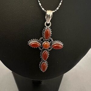 Sterling silver cross with carnelian stones