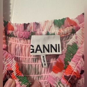 Ganni PLEATED GEORGETTE SMOCK MIDI DRESS - sugar plum