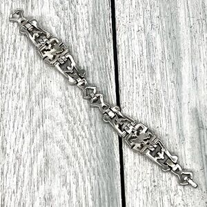 207. Antique Art Deco (1920s) Signed Mazer (Brother’s) Rhinestone Bracelet. 7” Long. Mazer Bros, founded by Lincoln and Joseph Mazer in 1927 in New York. produced fine costume jewelry until the late 1970's. Some stones are darkened from its nearly 100 years on our planet, and it is still fiery and sparkly. This one has character and class.