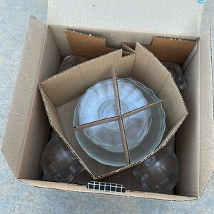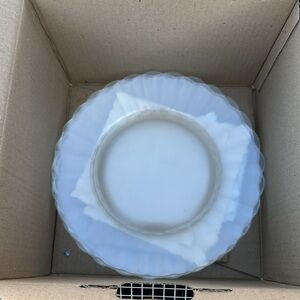 This vintage Duralex Les Verreries de Saint Gobain Lutèce 16 piece dinnerware set is in good condition. All 16 pieces are intact. These clear dishes come in their original box. This Lutece set comes with 4 dinner plates, 4 salad plates, 4 saucers, and 4 tea cups.