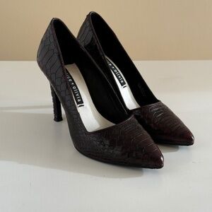 Alice + Olivia Dina Snake-Embossed Leather Point Toe Pumps - Size 36.5(us 6.5)