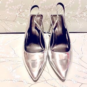 BCBGeneration Metallic Silver Slingback Pumps Women’s Size 8 New