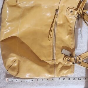 *Offers Welcome!** Authentic Coach Yellow Poppy Leather tote handbag. Features silver toned hardware, front zipper pocket, leather coach hang tag, dual flatleather top handles (9-inch drop), and a top zipper closure. Interior of handbag is lined in light beige satin with a side zipper pocket, a side flatpocket, and a cell phone/accessory pocket. Made in China. Date Code/Serial #:C1294-19002. Very clean, used only a few times.