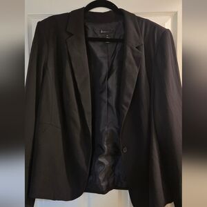 Black blazer that buttons up with one button. Long sleeves and slight padding in the shoulders for structure. Size 24. In great condition and worn only once. Comes from a smoke free and pet free home.